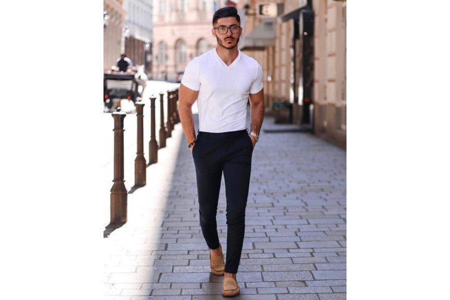 Your trousers must skim your body, not too tight, and finish just above your ankle.