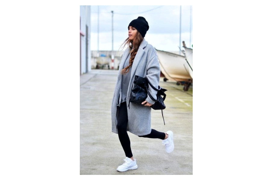Begin with a pair of well-fitting black leggings – opt for a high waist and material that keeps its form. Next, try an oversized grey hoodie on top, managing to be relaxed and stylish simultaneously. Please keep it simple with fresh white kicks that are the right mix of sporty and chic.