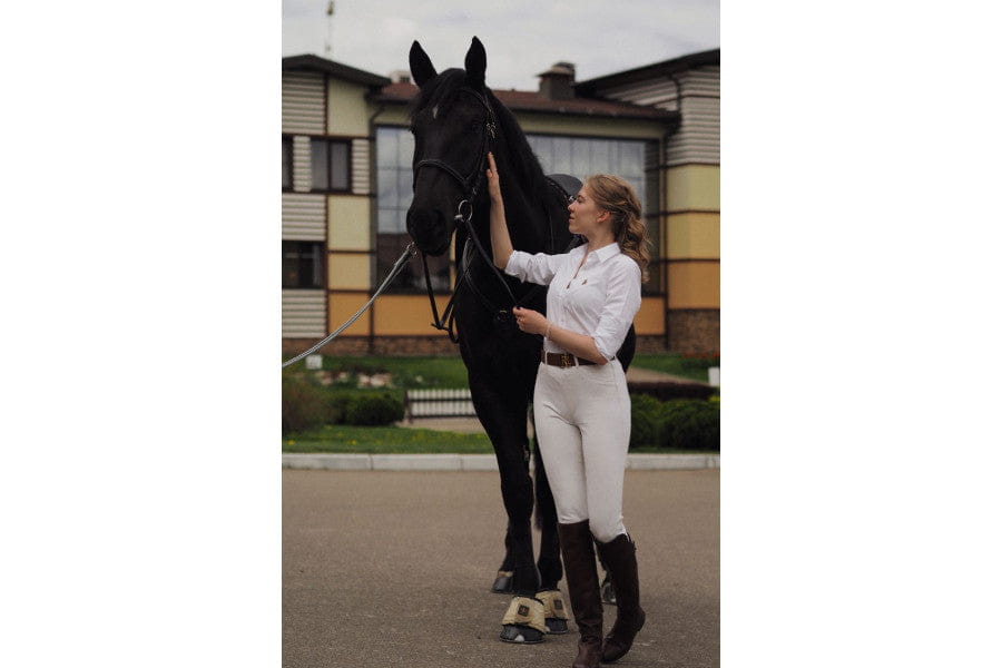 The old money look of a white shirt, beige riding breeches, black belt, tall brown leather boots, and the person in the picture holding the horse’s reins. You can’t get more classic, timeless, and heritage than that.