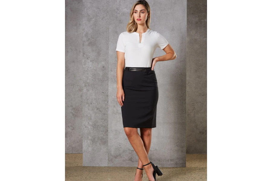 - Polo shirts with tailored chinos or skirts give a polished look, and you are comfortable, too.