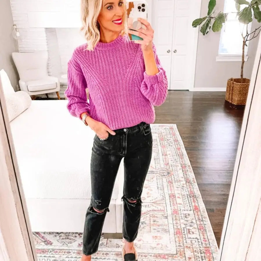 8. Black Jeans and a Bright Sweater
