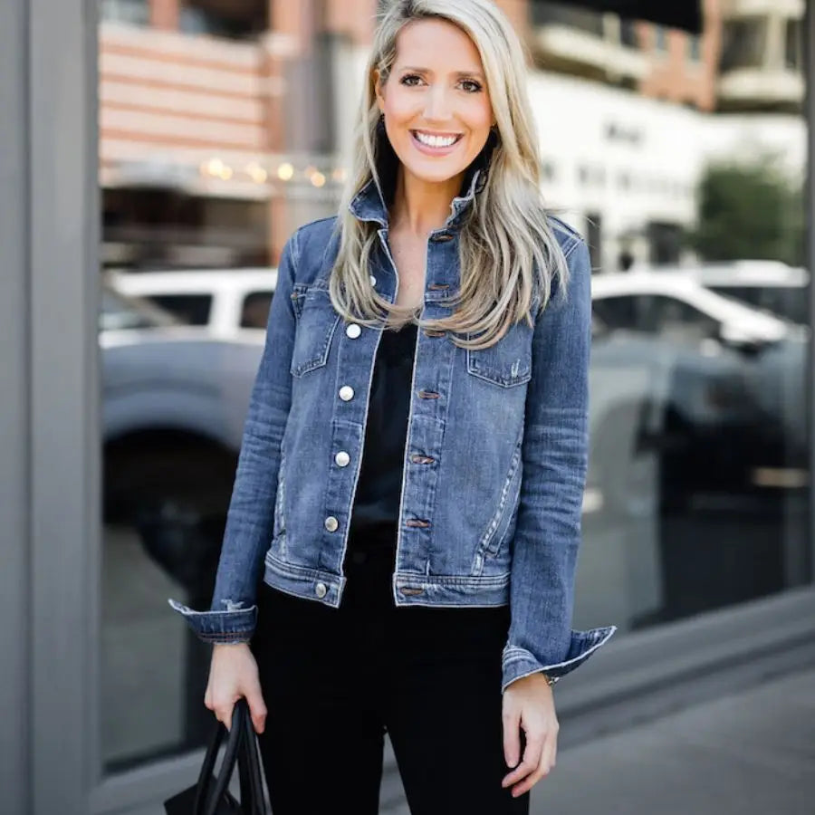 14. Denim Jacket and Black Jeans